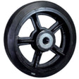 The mold-on rubber cast wheel is an economic wheel, providing cushion while rolling on a strong cast iron core. This wheel performs best in dry applications.