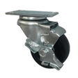 1-1/4" wide light medium duty swivel caster with a bright zinc finish as standard, black Electrocoat and nickel are available as options. Features a double ball raceway swivel, 3/8" Axle and nut and is NSF Listed.