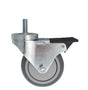 The caster rig has a bright zinc plated as standard, but black electrocoat and nickel are also available as options. Equiped with a double ball raceway swivel and a 3/8" axle and nut. This rig is also NSF Listed.