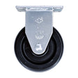 1-1/4" wide light medium duty rigid caster with a bright zinc finish as standard, black Electrocoat and nickel are available as options. Features a double ball raceway swivel, 3/8" Axle and nut and is NSF Listed.
