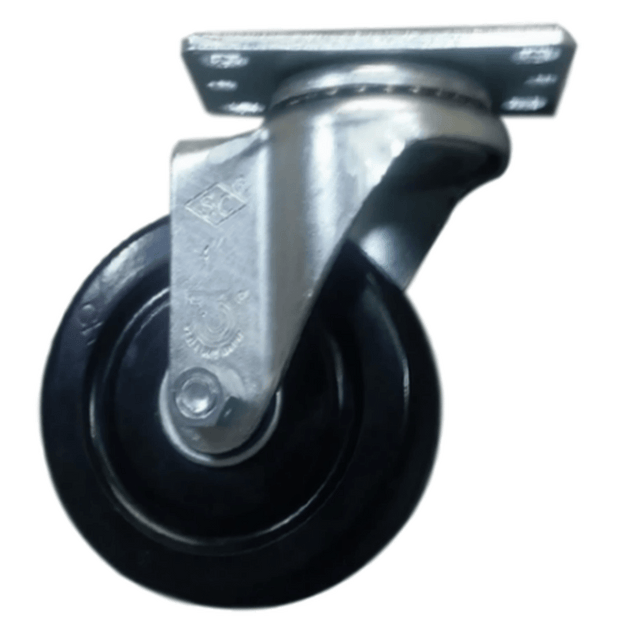 1-1/4" wide light medium duty swivel caster with a bright zinc finish as standard, black Electrocoat and nickel are available as options. Features a double ball raceway swivel, 3/8" Axle and nut and is NSF Listed.