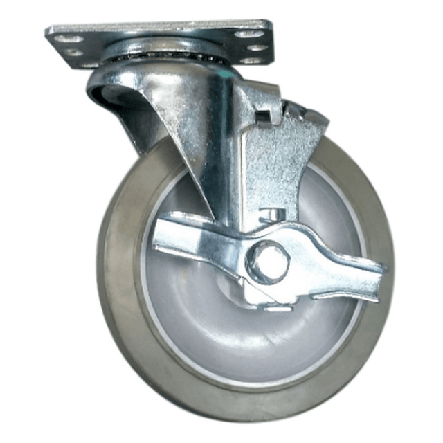 The Nomadic wheel is quiet rolling, provides a cushioned ride, and is impact-resistant, making it a great wheel for carts that carry sensitive cargo. With a flat tread, this wheel works well on hard floors, and the high-performance thermo-elastomer tread works great over bumps and thresholds.
