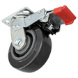 Total Lock Caster locks the wheels and swivel simultaneously with a touch of a toe. Best used where carts are pushed.