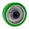 Polyurethane elastomer tread chemically bonded to an aluminum core. Aluminum core has a strong attractive appearance, is lightweight, and resistant to rust and corrosion.
