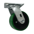 Polyurethane elastomer tread chemically bonded to a cast iron core. These wheels are somewhat heavy and are ideal for warehouses with concrete and hardwood flooring.