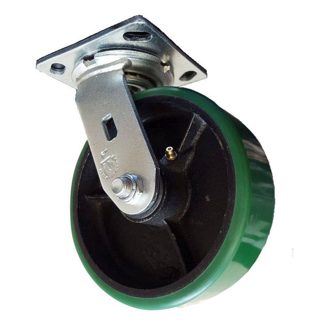 Constructed with a 5/8" bolt and nut kingpin, bright zinc as well as optional black finish, and grease fittings for the raceway and axle. Also features wheels with 1-1/2" and 2" tread widths.