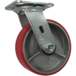 Polyurethane elastomer tread chemically bonded to a cast iron core. These wheels are somewhat heavy and are ideal for warehouses with concrete and hardwood flooring.