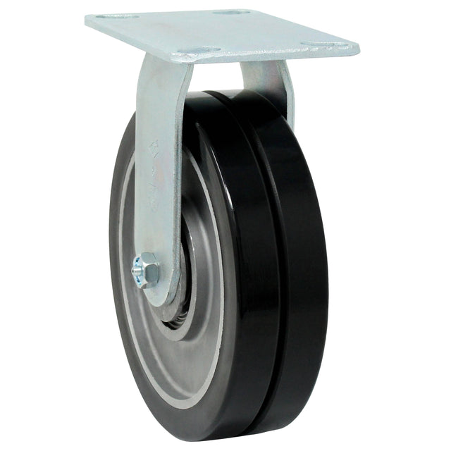 8" x 1" x (2) Heavy Duty Rigid Caster with Dual Round Tread Polyurethane Wheels