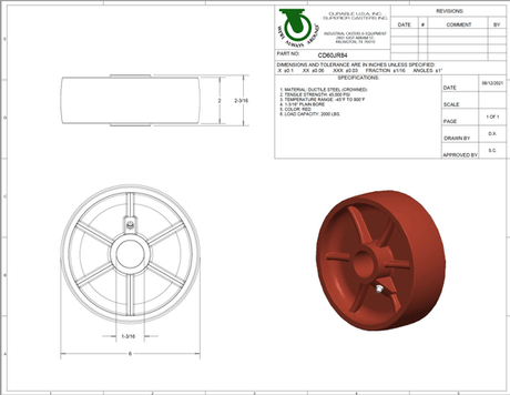 6" x 2" Energy Saver Ductile Steel Wheel - CD60JR02